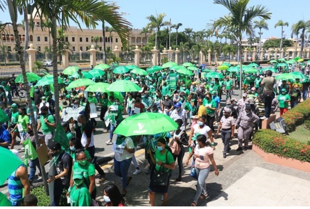 – Photo 3 : le 23 mai, les dominicain.e.s ont marché en faveur des 3 causes. Des milliers de personnes ont défilé dans les rues de Santo Domingo.